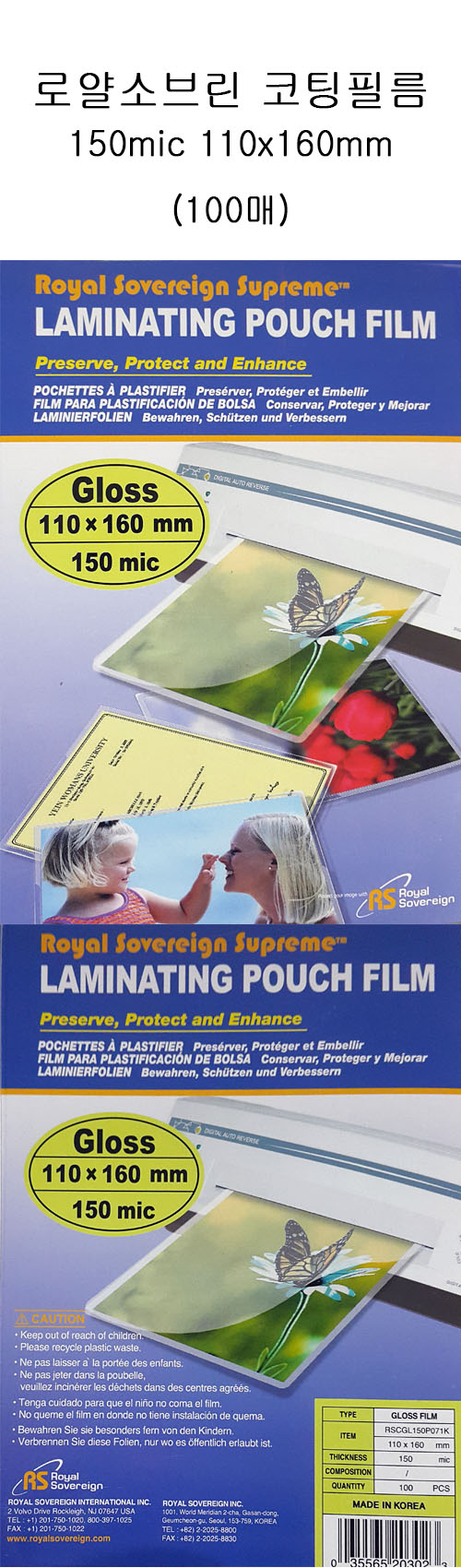 | 브랜드 | 로얄소브린 | 모델명 | 150mic 110x160mm |